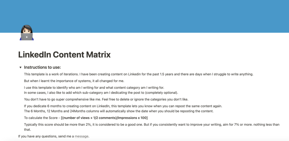 LinkedIn Content Matrix - A notion template
