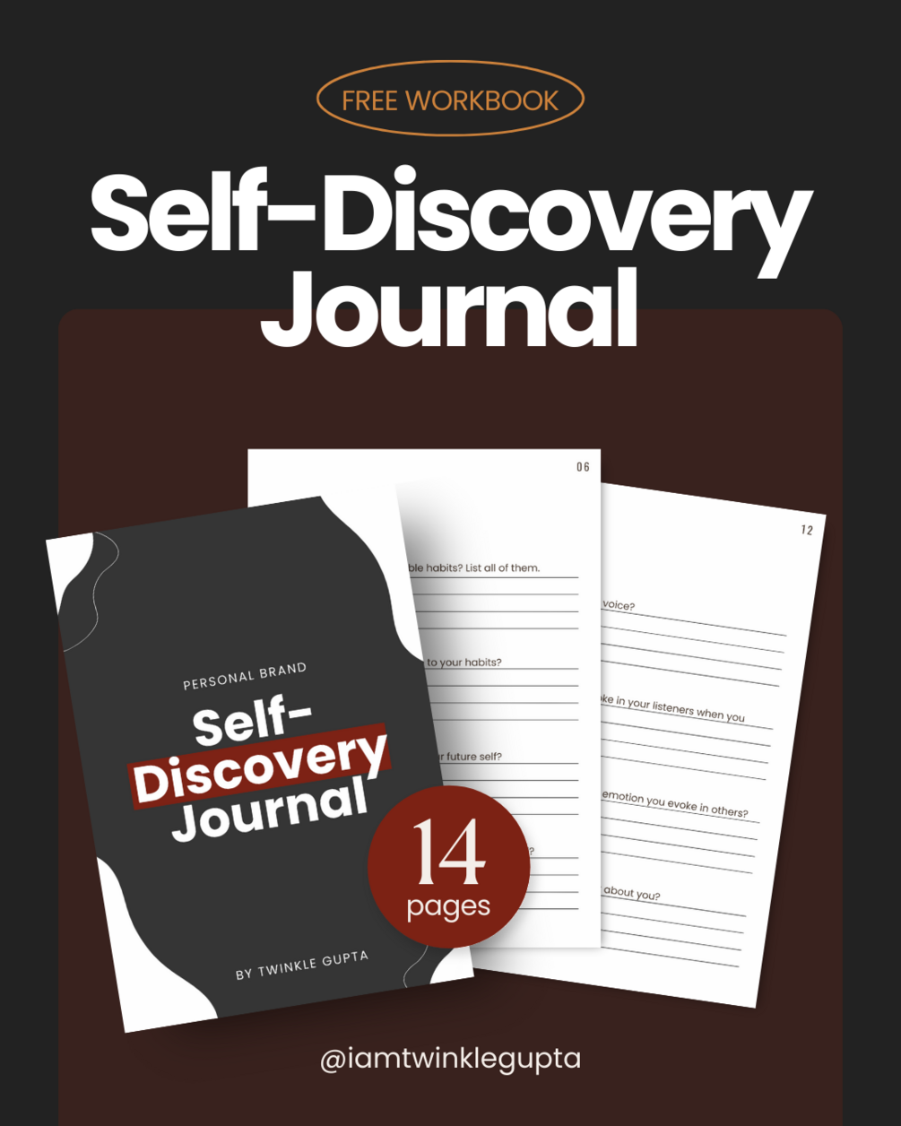 - Go through the self-discovery guide (28 pages) at your own pace to understand the basics of personal branding. This guide intends to answer all your questions and land you in confidence by the end of it.